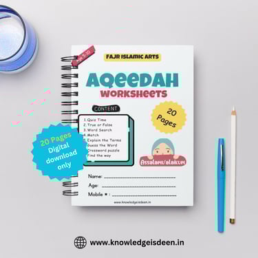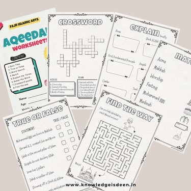Introduce young hearts and minds to the beauty and simplicity of Islam with Foundations of Deen for Kids. This digital PDF is specially designed for children, making it easy and fun to learn the basics of our faith. It contains around 20 worksheets activities like Quiz, True or False, Crossword puzzle, Word search game and many more!