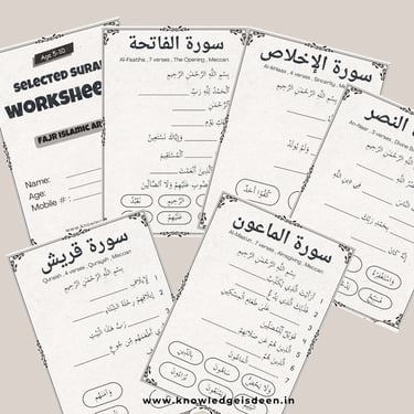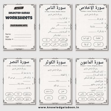 Make Quran learning fun and engaging with our thoughtfully designed Selected Surahs Worksheets! Perfect for kids, parents, and teachers alike, this collection features interactive fill-in-the-blank activities with options provided to assist young learners in understanding and memorizing the Quran.
