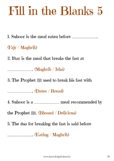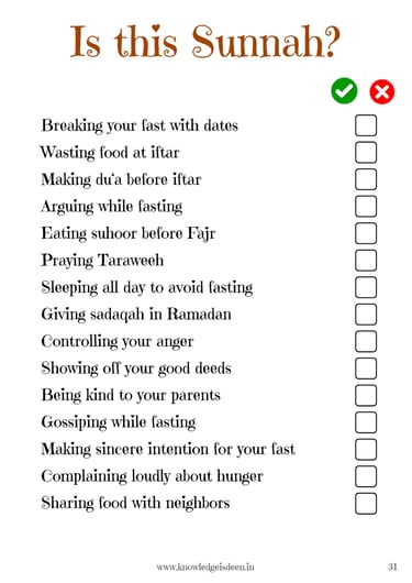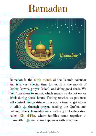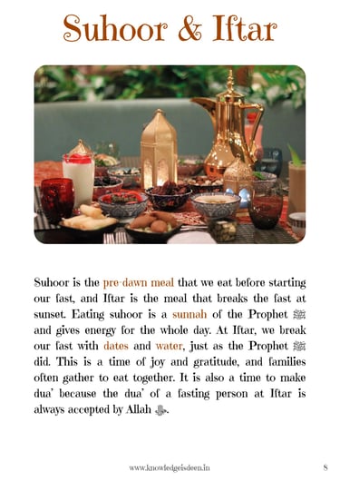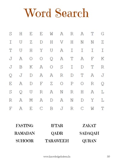 This engaging Ramadan activity book is designed for children aged 6-14 to learn about the significance of Ramadan in a fun and interactive way! It includes short, easy-to-understand explanations on fasting, suhoor, iftar, taraweeh, and more, along with exciting activities such as quizzes, word searches, mazes, fill-in-the-blanks, Ramadan trackers, and coloring pages.